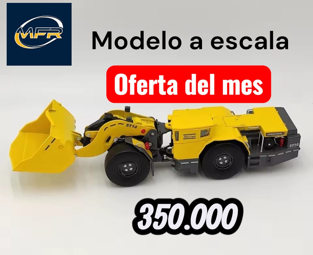 En RS DRILLING GROUP SAS ofrecemos modelo a escala de cargador bajo perfil, ideal para exhibición, capacitación y representación de equipos utilizados en minería subterránea.